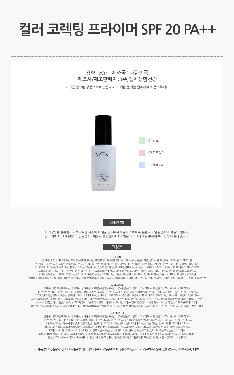 VDL Color Correcting Primer 30ml / VDL 컬러 코렉팅 프라이머 30ml