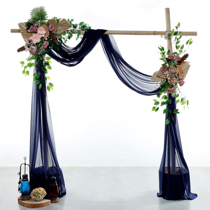 VDS Pack of 1 Panel (30 Inch X 20 Feet) Wedding Arch Draping Fabric Sheer Chiffon Fabric Drapery for Wedding Ceremony Reception Swag Backdrop Canopy Chuppah ARBO Altars Decoration (Navy Blue)