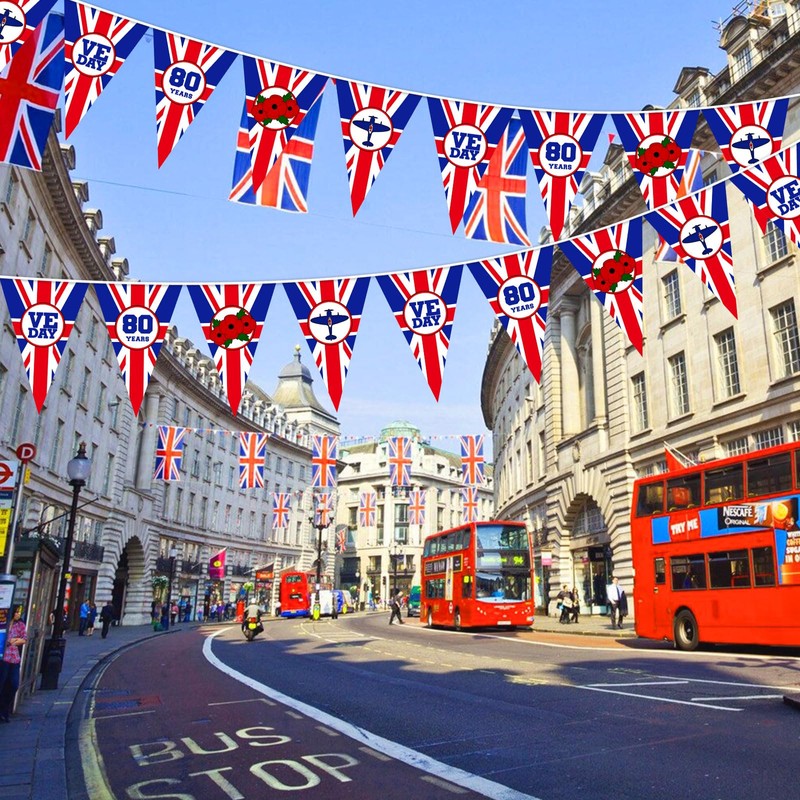VE Day 80th Anniversary Flag 2025 VE Day 80th Anniversary Decorations Banner Bunting for Bar Club Garden School Street - 26.2ft