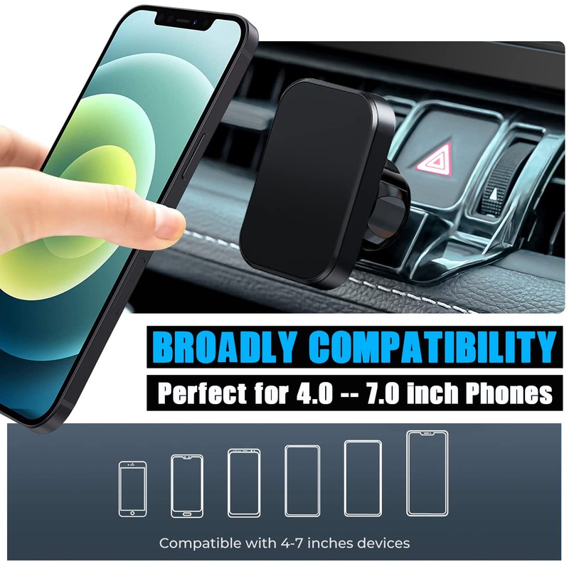 • 【360° ROTAION】Holds phone strongly in both landscape and portrait. Great suction, tilts, rotates, and allows you to control the vents. Can easily spin to a different position when needed and not worry about the phone falling. Car phone mount can be compatible with mobile phones from 3 To 7 Inches.