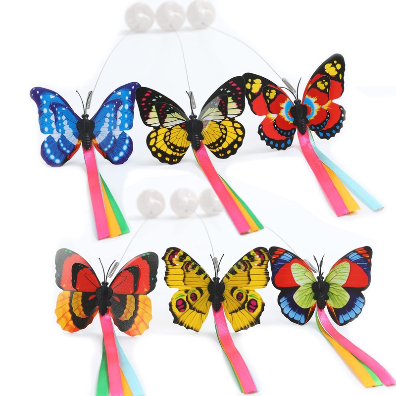 Vealind Interactive Indoor Cat Toy with 360° Rotating Butterfly (Butterfly 6-Pack)
