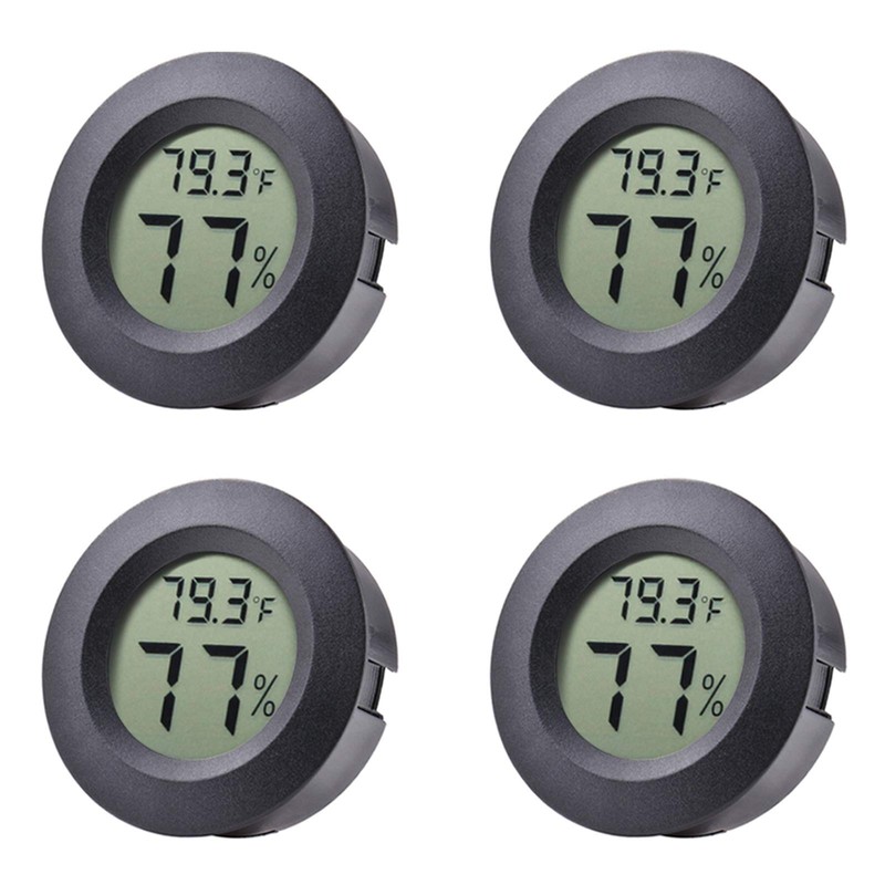 Veanic 4-Pack Mini Hygrometer Thermometer Fahrenheit or Celsius Meter Digital LCD Monitor Indoor Room Round Humidity Temperature Gauge for Humidors Home Greenhouse Babyroom Reptile Incubator
