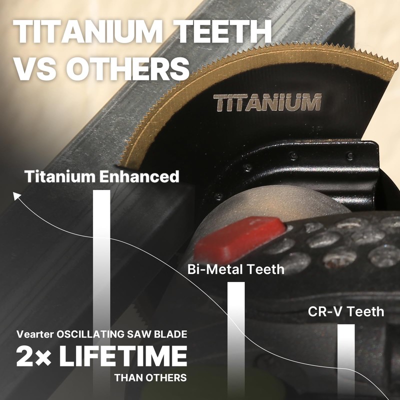 - Titanium Enhanced - The titanium coated teeth power oscillating tool blades offer 2X longer life compared with standard bi-metal blades