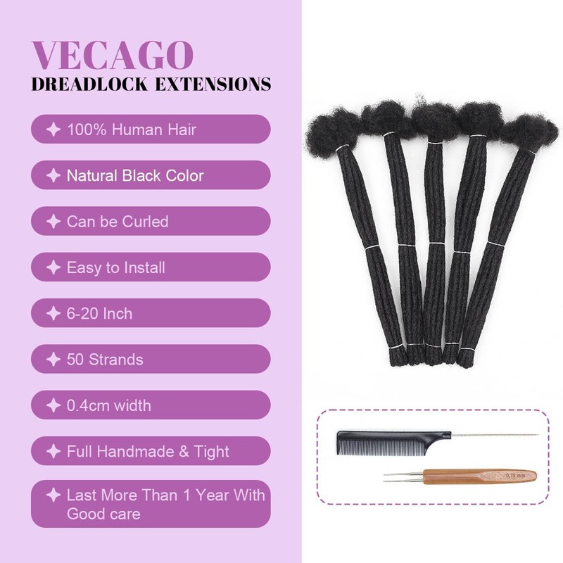 - 【Human Hair Loc Extensions Care】Dreadlock hair extensions are tight and durable, so they may feel a little stiff, but if your hair is properly conditioned, they will loosen up quickly.Use gentle washing methods before wearing, and apply the right conditioner or essential oils for optimal results.