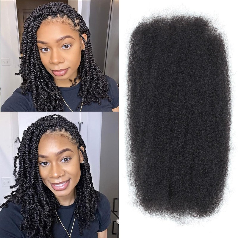 - Advantages : 100% human hair,Afro Kinky Bulk Human Hair looks just like your own hair and can blend better with your own hair. It can be washed like your own hair, is softer and more skin-friendly, and has a longer lifespan