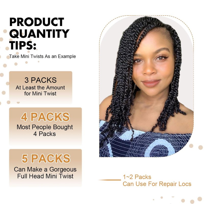 - Variable Hairstyle : You can make your own dreadlock extensions, It is thick which makes it easy to crochet into dreadlocks,Afro Kinky Bulk Human Hair also can do micro locs, micro twist , butterfly locs, faux locs, passion twist crochet braids and so on. Afro Kinky Bulk Human Hair is perfect for repairing damaged or loose braids, it can be used to add length, volume and texture to your hair, making it look healthier.