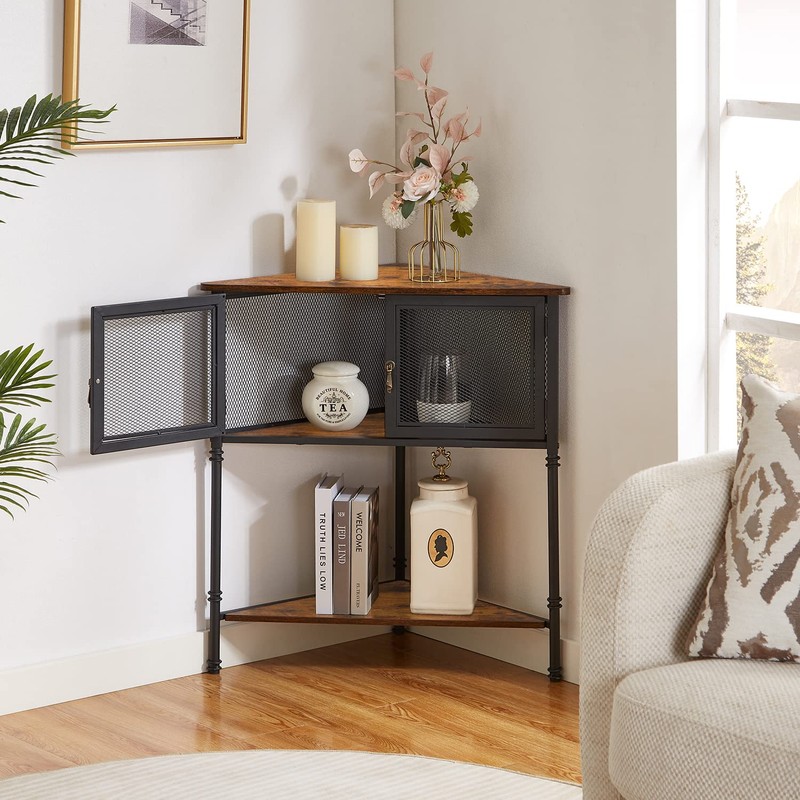 - 【Multiple Storage】 The 29" tall corner table with 3 tiers storage shelves for placing lamps, vases, knick knacks, and other necessities, you can store your private item in the stylish meshed cabinet. 20"D x 20"W tabletop occupies a small area but greatly adds extra storage space for you.