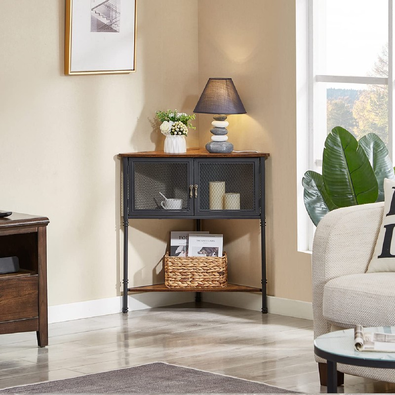 - 【Perfect Corner Organizer】 This triangular-shaped corner table makes the best use of your small corner space for storing and displaying. The rustic wood tabletop and black metal frame give this corner table a touch of industrial charm, and will give your spare corners a sense of fulfillment. Easily matched with all your room decor.