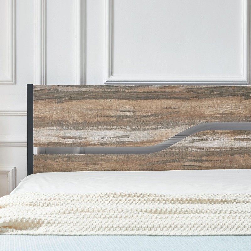 • Sturdy & Stable: This bed frame build with 9 legs and 14pcs of heavy-duty steel slats, grey oak Industrial wooden grain headboard and footboard adds better supports to your mattress;