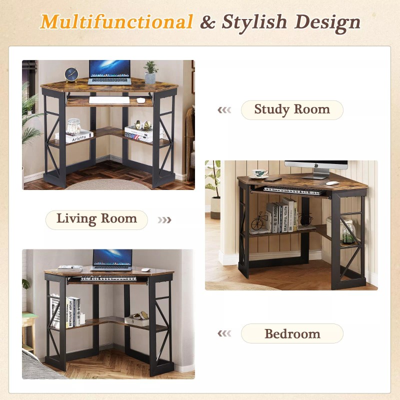 【Corner design 】The corner desk maximizes space in a compact room. The L-shape fits snugly into a corner. Suitable for all study rooms, offices and small spaces.