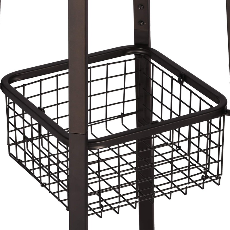 - With hooks, shelves, and basket, good for store coats, jackets, scarves, hats, shoes, dog leashes, umbrellas, bags, backpacks, purses, and more.