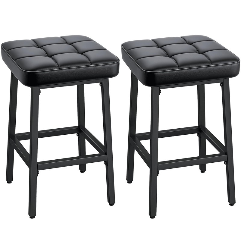VECELO Modern Counter Height Bar Stools Set of 2, 24" PU Leather Upholstered Counter Stools with Metal Frame, Backless Square BarStools Bar Chairs for Kitchen Island, Black