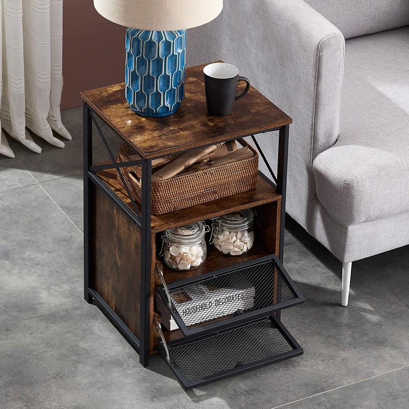 - 🎃Large storage with 2 flip drawers and 2 open shelves. Smooth surface and end tables drawers for displaying daily necessities. The flip drawers conceal anything you want. It's easy to pull the handle for quiet opening and closing.