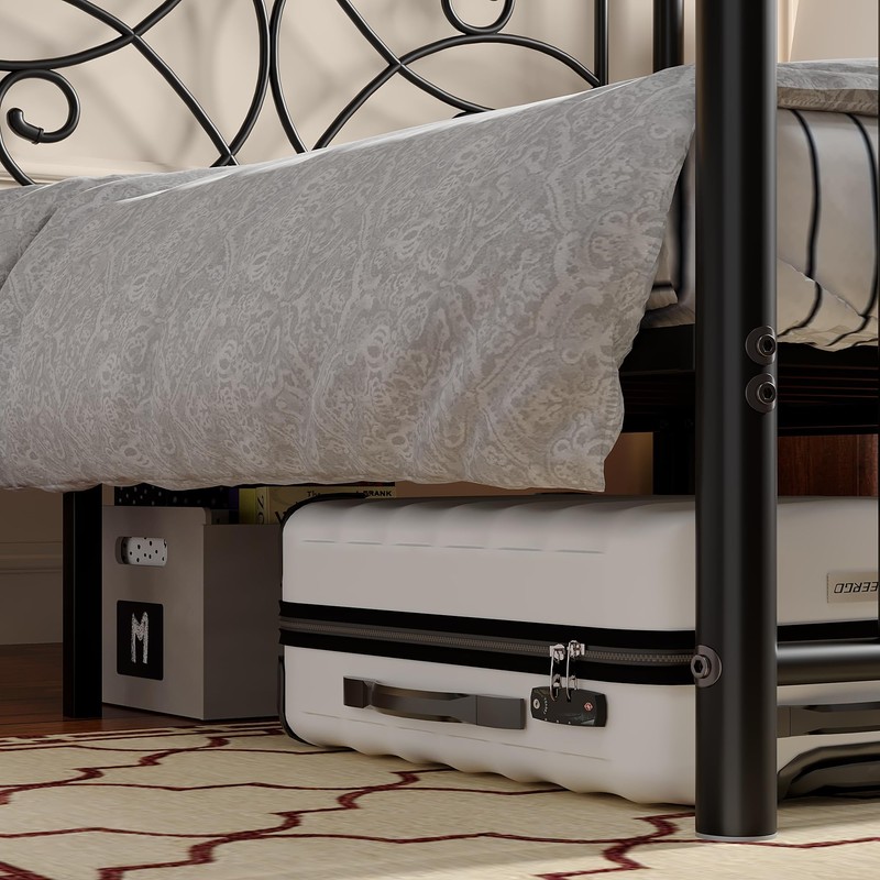 • [Heavy Duty Iron Bed Frame] - Classic look queen size bed frame with 3 extra mid legs, up to 9 reinforced legs and 13 metal slats provide better support, well-structured increase stability for long-term use; Maximum Weight Recommendation: 650 Pounds.