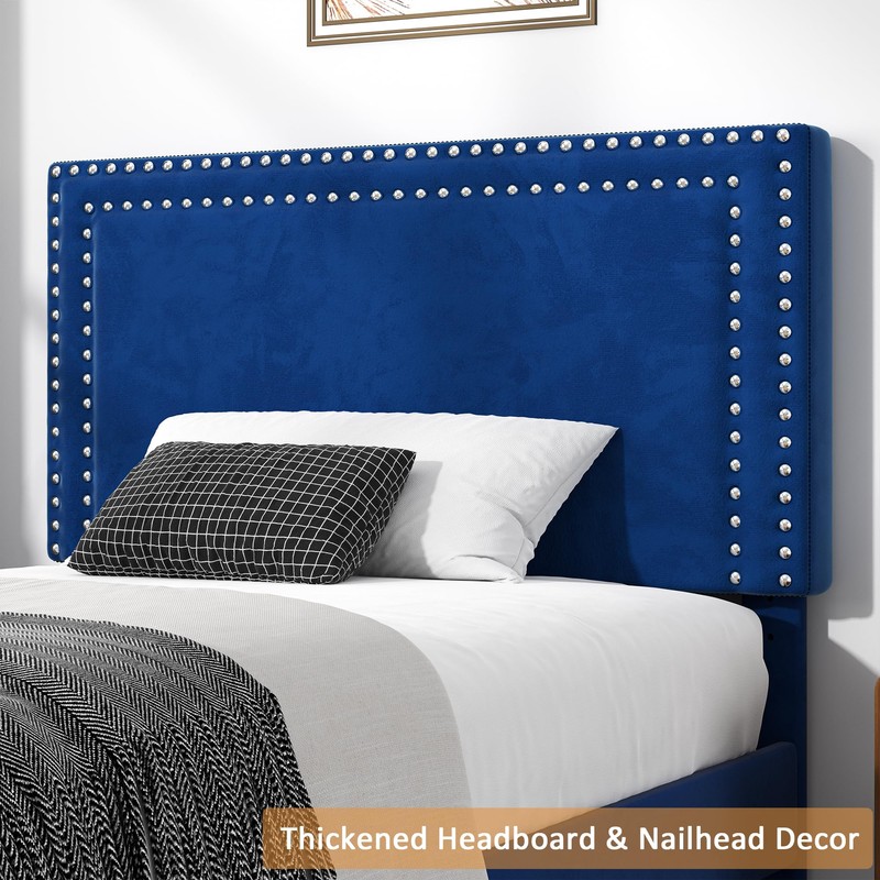 - Elegant Velvet Upholstery with Nailhead Trim: This twin bed frame adds a touch of luxury to your bedroom with soft velvet upholstery and chic silver nailhead trim, making it a stylish centerpiece for any decor.