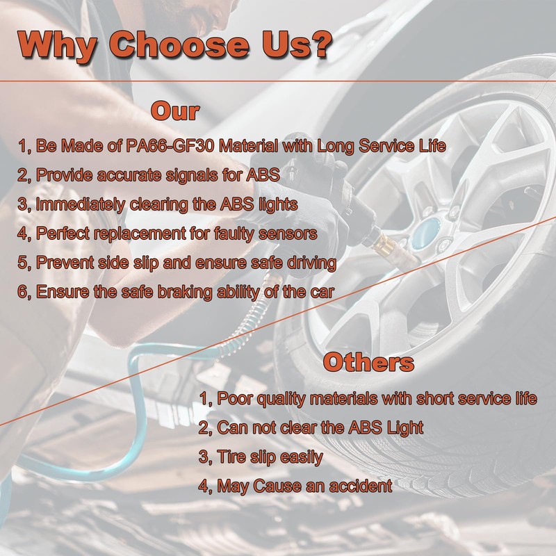 - Some Vehicle may use the same Front Wheel ABS Sensor, but different rear sensor. please double check we provide correct item for you.