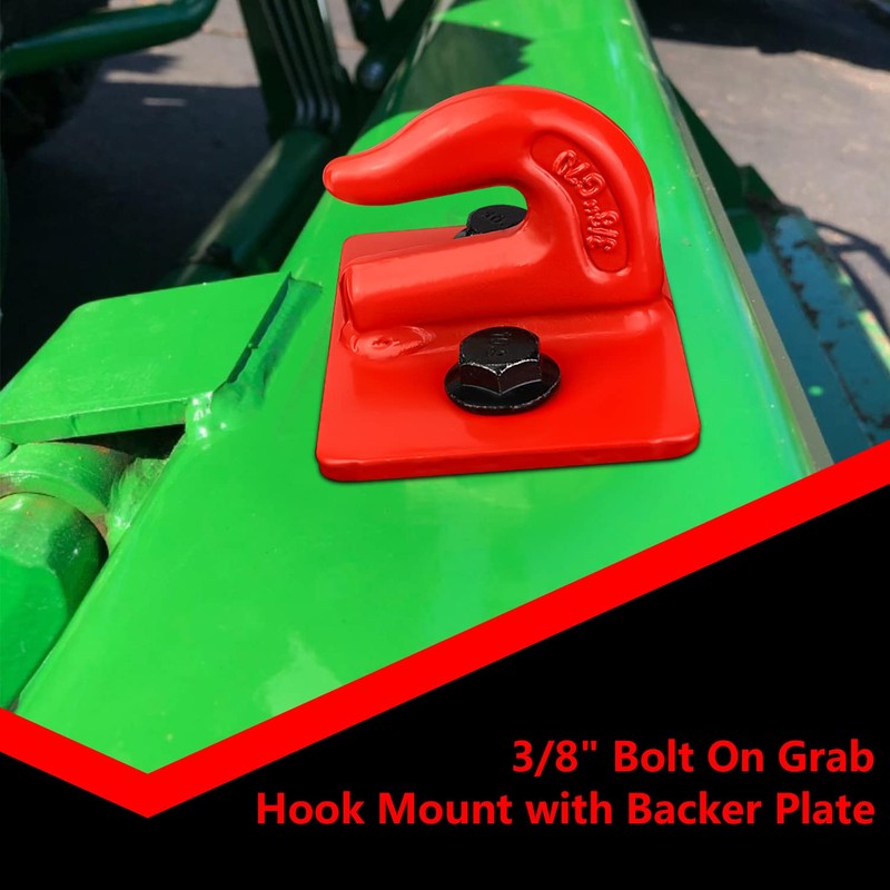 Vechkom Red Tractor Bucket Hooks 3/8 Bolt On Hooks for Tractor Bucket Max 7500Lbswork for Tractor Bucket, Rv, Utv,Truck 2Pack