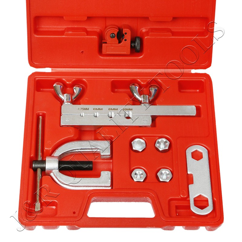 - Yoke assembly, Flaring bar, Gauge/wrench, 10mm tubing, 4 adapters for 4.75mm, 6mm, 8mm, 10mm