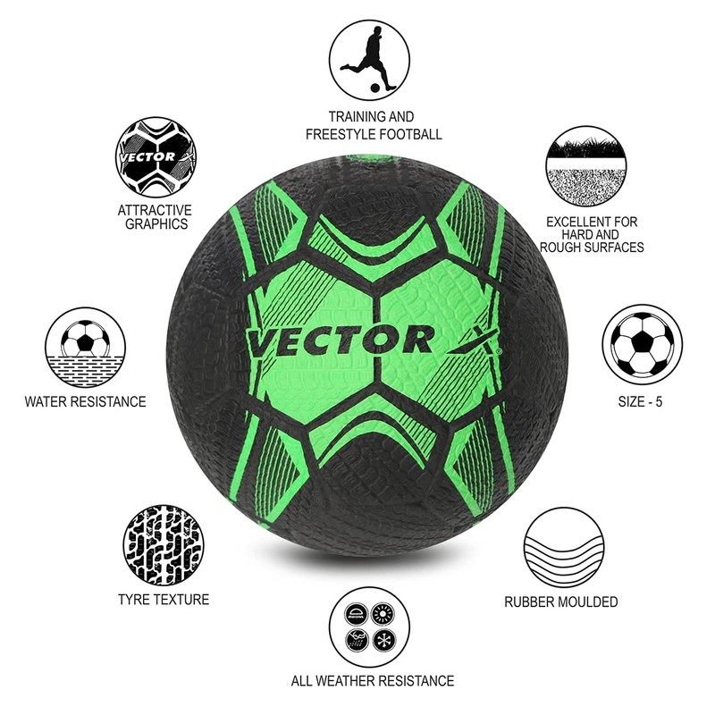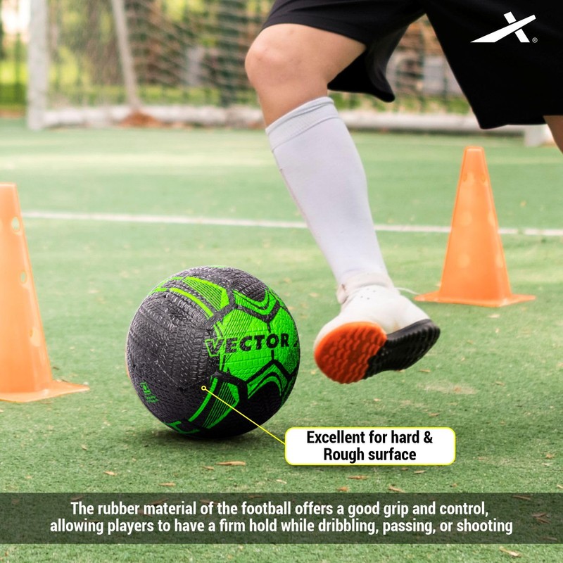 Vector X Street Soccer Football (Green,Black/Size-5) | Material- Moulded rubber | All Surface | High Bounce | High Speed | Rubberized Outer core | High Air Retention Bladder | 32 Panel | Training