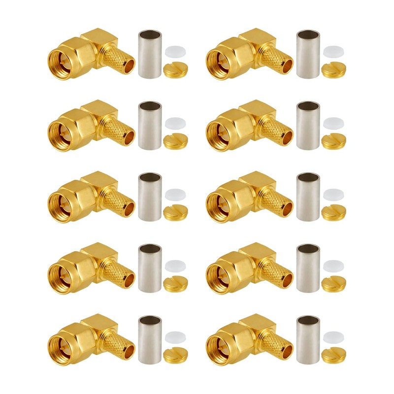 - Product Name: 10 PCS SMA Male Right Angle Crimp Connectors for RG58 RG142 RG400 LMR195 RF Coax Cable;