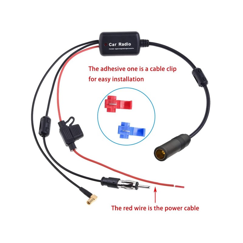 - Note: 1. This antenna splitter has a signal booster. Do not connect the antenna that contains the signal amplifier, as this may cause signal interference.2. The antenna amplifier is used to amplify the car radio signal. If your radio does not receive the signal, you may not receive the signal after connecting the antenna.