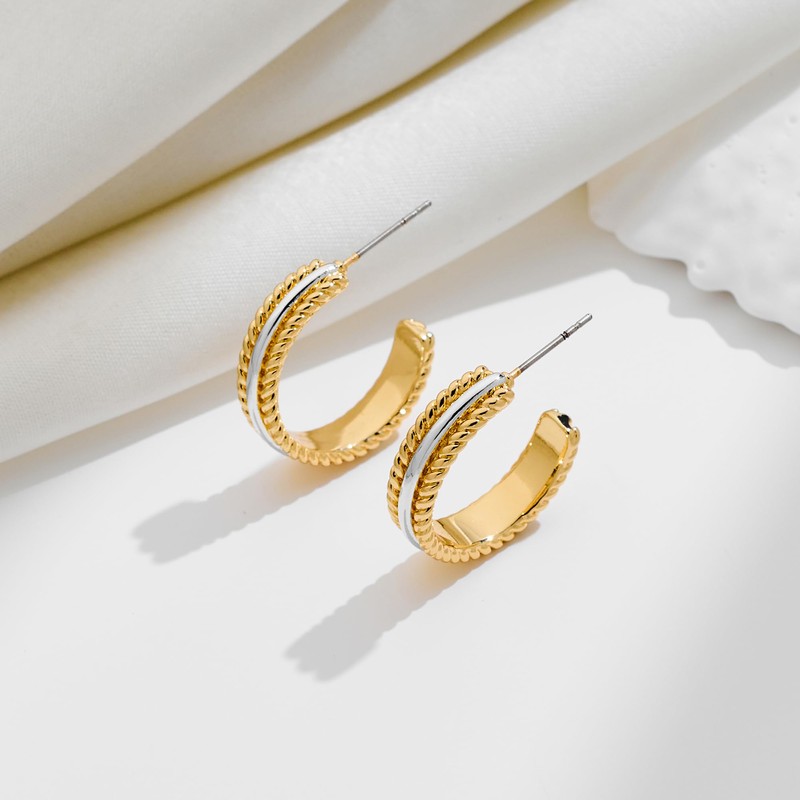 VEDAIM Gold and Silver Mixed Metal Earring Two Tone Studs Earrings for Women Chunky C Hoop Earrings Fashion Jewelry, big, Brass, No Gemstone