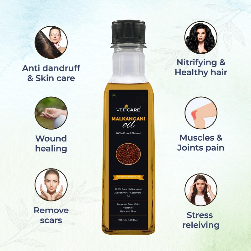 Vedcare Pure Malkangani (Jyotishmati/Celastrus Paniculatus) Hair Oil, 250ml