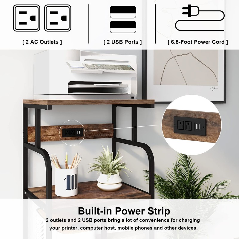 - 【Upgraded Extensive Design】Our tall printer stand includes built-in USB port plugs power outlet(2 charging port & 2 power sockets),easy for your printer stand, laptop, computer or smartphone charging without additional outlets, which provides convenience while working. Also versatile as a kitchen trolley cart, bar cart, file cabinet, side end table, utility carts, etc.