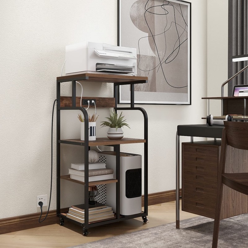 - 【Upgraded Extensive Design】Our tall printer stand includes built-in USB port plugs power outlet(2 charging port & 2 power sockets),easy for your printer stand, laptop, computer or smartphone charging without additional outlets, which provides convenience while working. Also versatile as a kitchen trolley cart, bar cart, file cabinet, side end table, utility carts, etc.