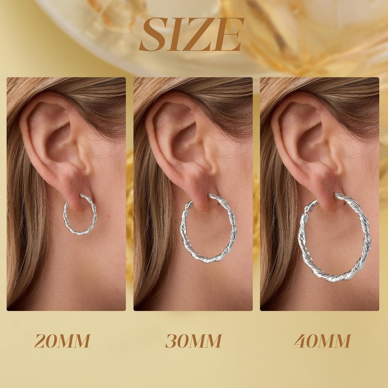 - 【Lightweight Sterling Silver Hoop Earrings】These silver earrings have an outer diameter of approximately 30/40/50/60mm, with multiple sizes available. Whether for a simple outfit or an elegant evening gown, they will enhance your overall look. The chunky silver hoop earrings showcase a rich polished finish and an openwork design that ensures a modern touch. Make these stylish silver chunky hoops the highlight of your accessories!