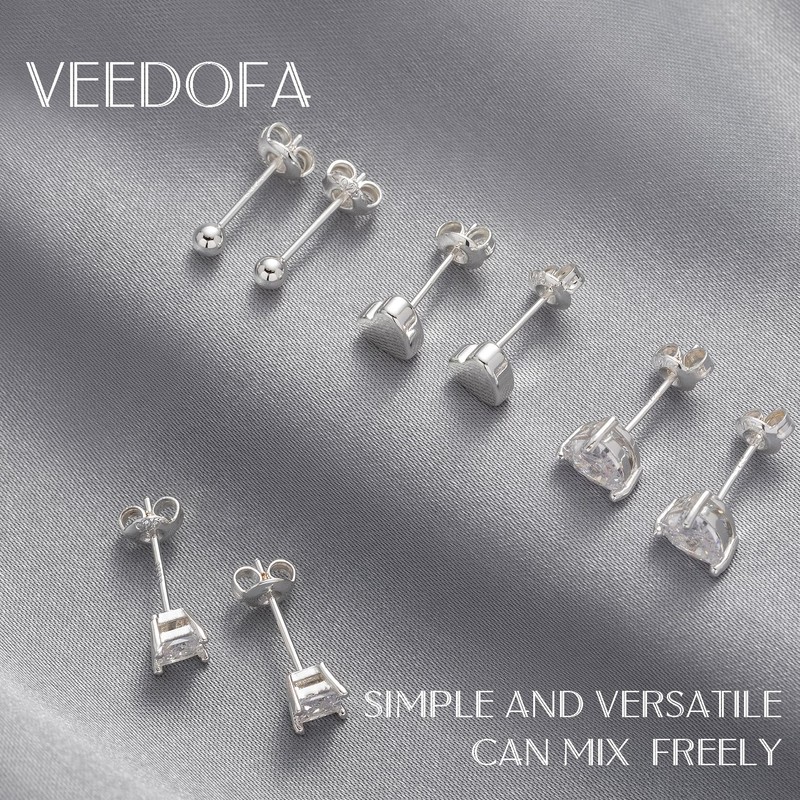 VEEDOFA Silver Stud Earrings for Women, Hypoallergenic 925 Sterling Sliver Stud Earrings, Zirconia Ear Studs Gifts