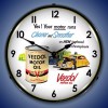 This Veedol Motor Oil Wall Clock, LED Lighted is a 14 inch backlit LED lighted clock manufactured in America. The clock has an antique, vintage look and feel to it..