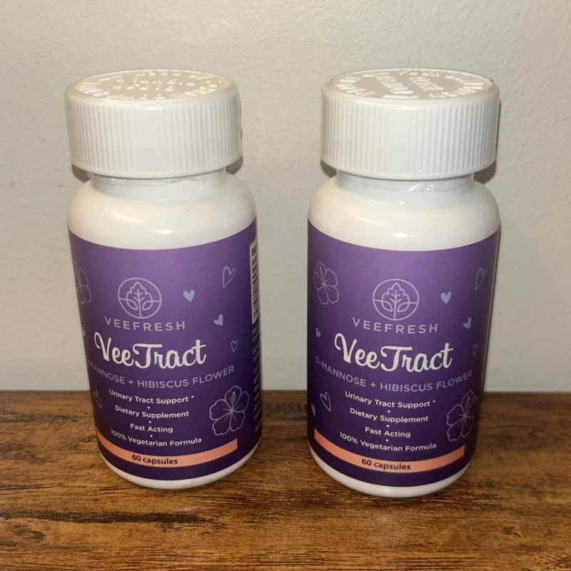 VeeFresh 2 Packs VeeFresh VeeTract D-Mannose + Hibiscus UTI Support 60ct Sealed EXP 01/27