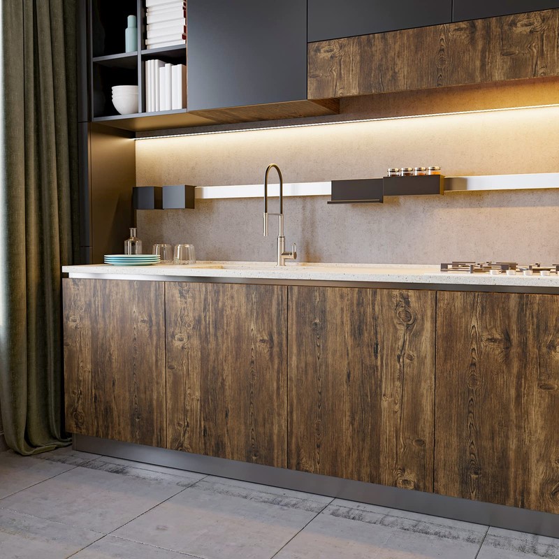 - 〚Multipurpose 〛Reclaimed wood wallpaper peel and stick for kitchen countertops, cabinets, walls, dining table, desk, shelf liners, drawer, bookcases, bathroom vanity, stair risers, dresser, doors, fireplace, flooring, closet, nightstand, TV stand, farmhouse, cabin, kitchen island, living room, any smooth and flat surface
