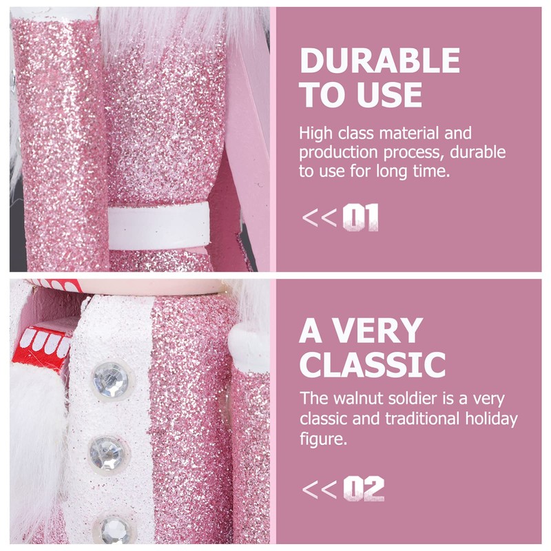 - Glitter Christmas : Each nutcracker Christmas tree decoration has pink glitter, which is a warm and clean Christmas colour scheme. Christmas nutcracker figures can be integrated with various
