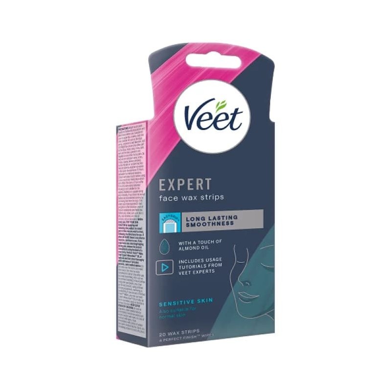 Veet Expert Face Cold Wax Strips 20s for Sensitive Skin are designed to remove the shortest of hairs* from the root for long lasting smoothness and great results, suitable for small and delicate areas like upper lip, cheeks and chin.