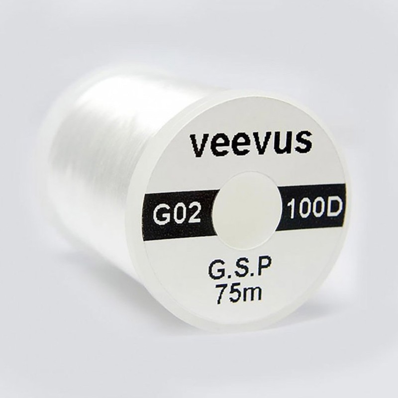 Veevus has given it's G.S.P or Gel Spun Polyethylene a slight twist so that it lays flat in the tying process. This flat strong tying thread is absolutely the best thread you can use for tying spun hair flies. We also really like it for making egg patterns. Each spool of thread contains 75 meters which is 67% more than any other manufacturer we are aware of. GSP thread is a must add to your fly tying kit. Big flies, spun hair flies, egg patterns, and more. Available in 30 Denier white, 100, 150, 200 Denier Black and white. 30 Denier being the lightest for smaller hook sizes and going up to 200 if you are tying massive Bass or Saltwater patterns.