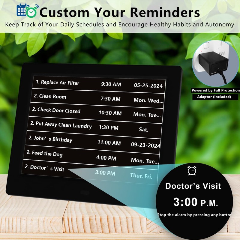 - ✅【10 Preloaded Alarms & 20 Custom Reminders, Messages】 Not just multiple alarm settings, but also include 10 preloaded alarms with colored image icons( Drink Some Water / Medications/Appointment ...etc.). Besides, the clock allows you to custom reminders or messages for important tasks or events, it's a great time-managment system ! NO need to touch the clock as the alarms can be turned off automatically or by remote!