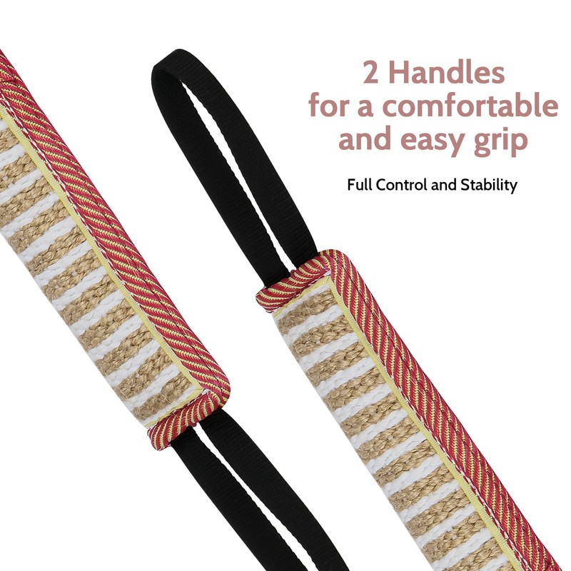 - Premium Quality: A premium quality toy with double stitching and a tough biting sleeve surface made of jute. It has two handles for a comfortable and easy grip, providing full control and stability