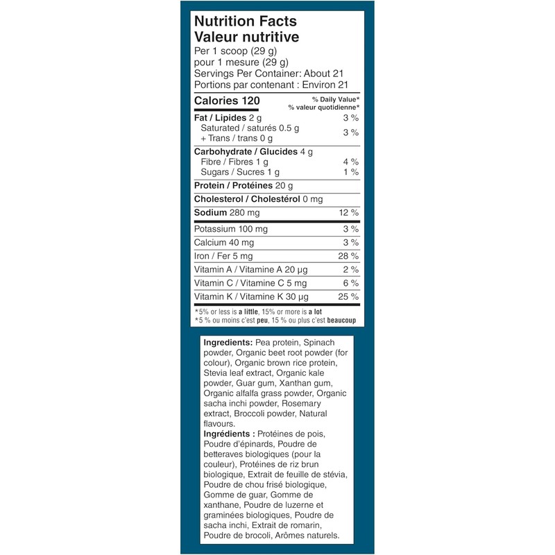 PROTEIN & GREENS – 20g pea protein with organic spinach, kale, alfalfa & broccoli.