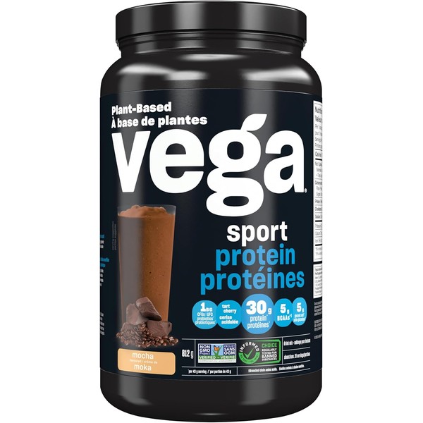 Vega Sport Protein – Mocha | 30g plant-based protein with 5g BCAAs & 5g glutamic acid from pea, pumpkin, and sunflower proteins. Supports recovery with tart cherry, turmeric, and probiotics. Informed Choice Certified, vegan, gluten-free, keto-friendly, and non-GMO. No artificial flavors, dairy, or soy. Smooth texture—just blend, shake, or add to smoothies.