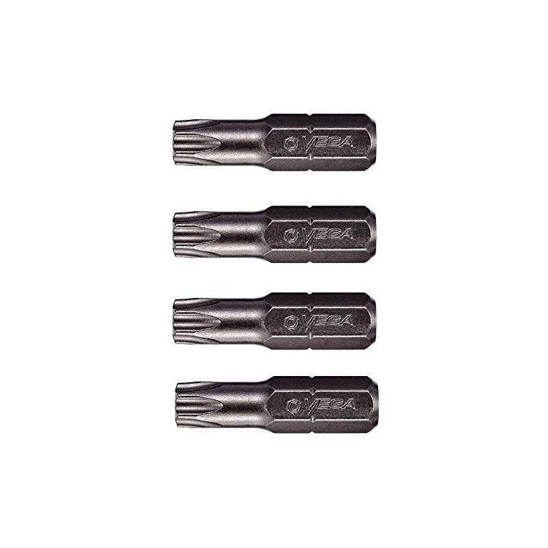 VEGA T20 TORX Security Bits. Professional Grade ¼ Inch Hex Shank TORX T-20 S2 Steel 1" Security Bits. 125TT20A-4 (Pack of 4)