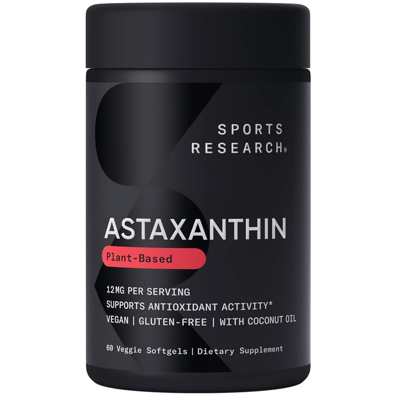 Sports Research Triple Strength Vegan Astaxanthin Supplement from Algae - Plant Based Softgels for Antioxidant Activity, Skin & Eye Health - Non-GMO Verified, Made with Coconut Oil - 12mg, 60 Count