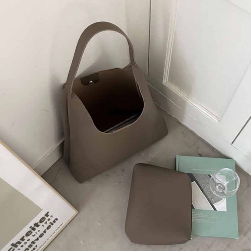 Vegan Leather Tote 2025 Fall Winter Large Shoulder Bag Minimalist Retro Bucket Work Commute Texture Litchi Grain Handbag