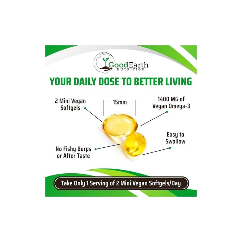 Vegan Omega 3 - Potent Plant Based Algal DHA derived from Marine Algae - Better than Fish Oil - 60 Veggie Softgels - Supports Brain, Heart, Joints P