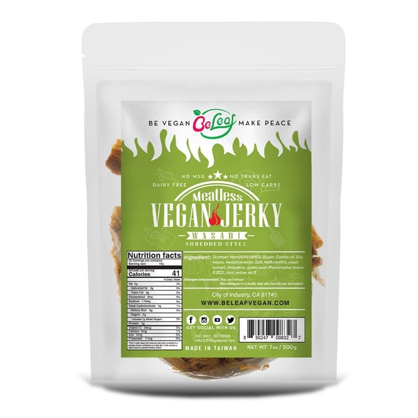 Beleaf Wasabi Plant-Based Jerky | Delicious Meat Substitute | Low Carb, Non-GMO, Dairy Free, Plant Protein | Natural Ingredients | Spicy Healthy Snack 7oz