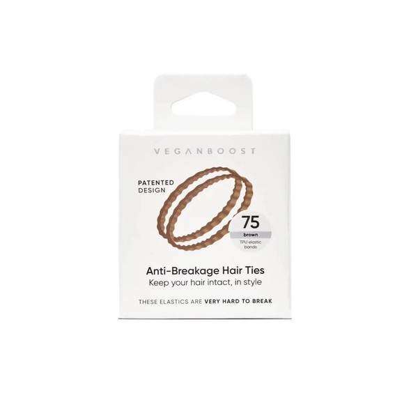 The Veganboost Anti Breakage Hair Ties Brown is an essential set of 75 small hair elastics designed with a special serrated edge for a firm grip on your hair. Whether you choose a ponytail, braid or other hairstyle, these elastic bands ensure that your hairstyle stays in place all day long, even during active activities!