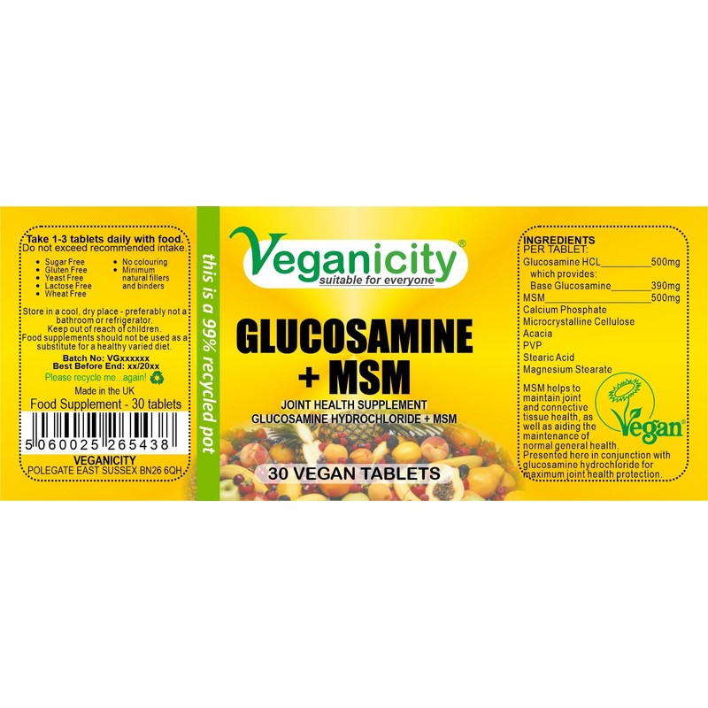 Veganicity Glucosamine HCL + MSM : Joint Health Combination : 30 Tablets, in a Planet-Friendly 99% Recycled Pot