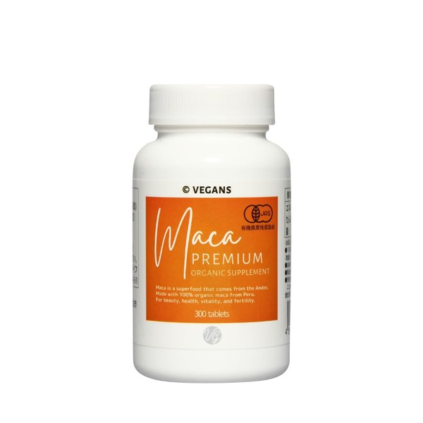 Vegans マカプレミアム 有機JAS認証 オーガニックサプリメント 大容量300粒/約60日分【100%有機マカ99,000mg】無添加 国内製造 男女兼用