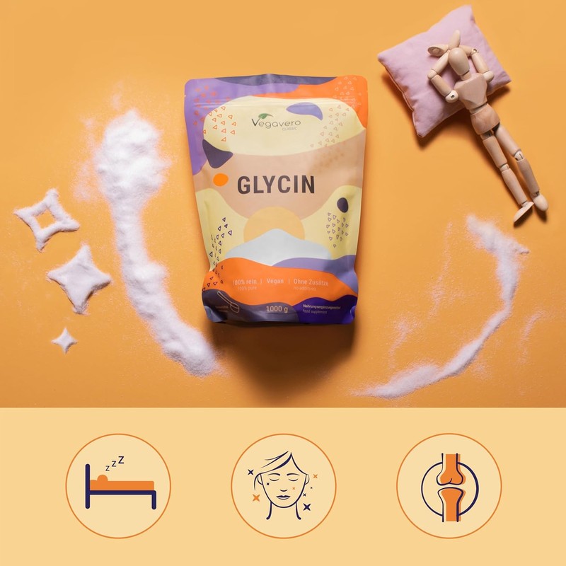 Glycin hat viele Funktionen im Körper. Es ist für die Kollagensynthese unerlässlich. Kollagen wiederum verleiht der Haut, den Knochen, den Sehnen, den Gelenken und den inneren Organen strukturellen Halt. Die Kollagensynthese und der Glycinbedarf ist nach Verletzungen erhöht, um die Wundheilung zu unterstützen. Es wirkt außerdem als Neurotransmitter, meist mit hemmender Wirkung im zentralen Nervensystem.